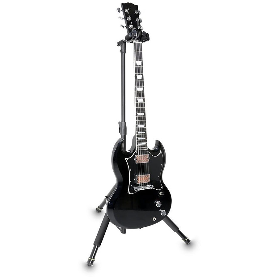 Profesionálny skladací stojan určený pre akustické a elektrické gitary a basgitary. Stojan je vyrobený z ocele a poskytuje dokonale pevné držanie pre váš nástroj. Okrem toho je jeho konštrukcia plne skladateľná a kompaktná, čo určite ocenia hudobníci pri prenose vybavenia. Stojan je vybavený samozamykateľným držiakom, ktorý automaticky zamkne krk gitary alebo basgitary a zaručí tak maximálnu bezpečnosť pri jej uskladnení. Šírka stojanu je 500 mm. Minimálna výška 680 mm, maximálna výška: 1080 mm. Hmotnosť: 1,67 kg. Stojan nie je vhodný pre dlhodobé uskladňovanie gitár s nitrocelulózovým lakom. Farebné prevedenie: Čierna.